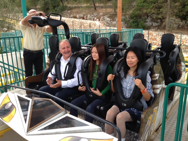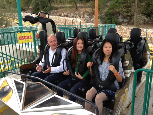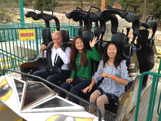 Le due ospiti, sempre accompagnate da Delle Rose, hanno poi voluto assaporare il brivido di una delle attrazioni più adrenaliniche di Fasanolandia: l'Euro Fighter.