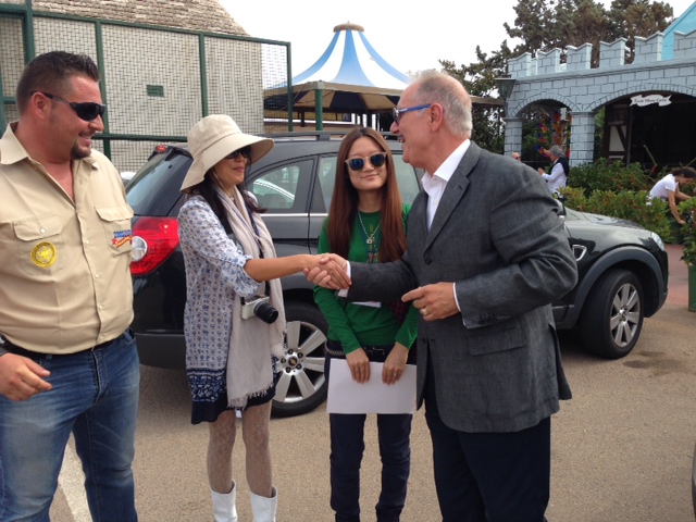 FASANO – Non saranno svizzeri ma la puntualità non è da meno. La delegazione cinese attesa per questa mattina (domenica 29 settembre) allo Zoosafari di Fasano è giunta come previsto. Accompagnate dal responsabile dell'ufficio stampa e marketing Gianfranco Delle Rose hanno fatto il loro ingresso nel parco faunistico fasanese Kathy Hung Fu e Baoying Liu della multinazionale "International Project  Executived". Un veloce saluto al proprietario della struttura Ugo De Rocchi e le due ospiti hanno iniziato a visitare il parco.