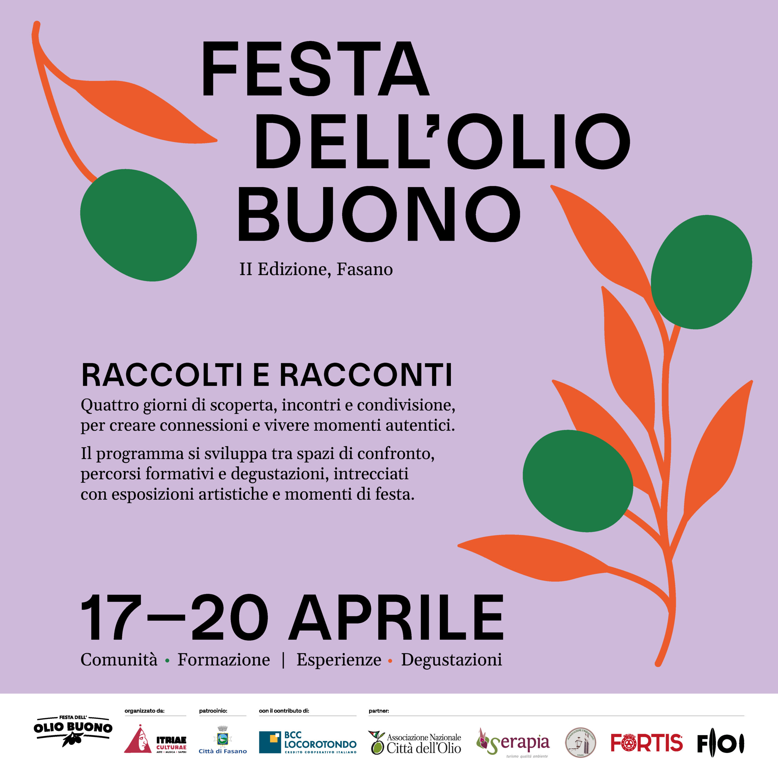 Fasano – Entra così nel vivo la Festa dell’Olio Buono – “Raccolti e Racconti”, con un calendario ricco di appuntamenti gratuiti pensati per coinvolgere produttori, operatori del settore, appassionati e famiglie, con l’obiettivo di promuovere la cultura dell’olio e valorizzare il territorio.