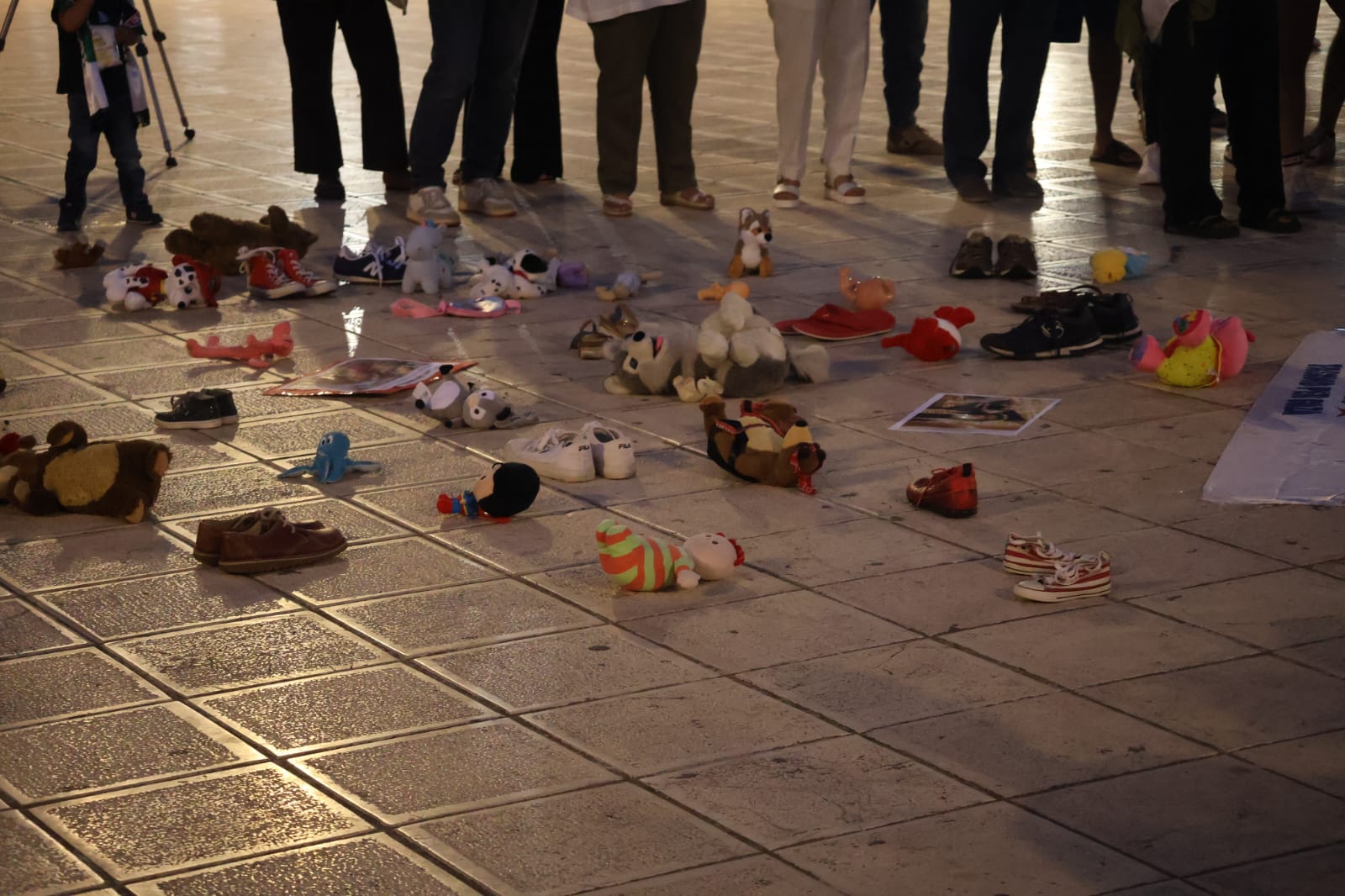 Proprio i bambini sono le vittime più colpite da questa tragedia, e a simboleggiarlo, tanti giocattoli e scarpine sparse per terra. Un susseguirsi di interventi che hanno riguardato sia la storia del popolo palestinese e la terra di Palestina, sia il silenzio e la complicità delle istituzioni nazionali, europee e internazionali, sia la presenza della Chiesa cattolica nella Striscia di Gaza che rappresenta ancora un baluardo di umanità a difesa del popolo palestinese. Testimonianze, poesie, musica, e un lungo applauso alla Global Sumud Flotillia, la più grande missione umanitaria internazionale via mare, che in queste ore sta cercando raggiungere la Striscia di Gaza per rompere l’assedio israeliano sul territorio.