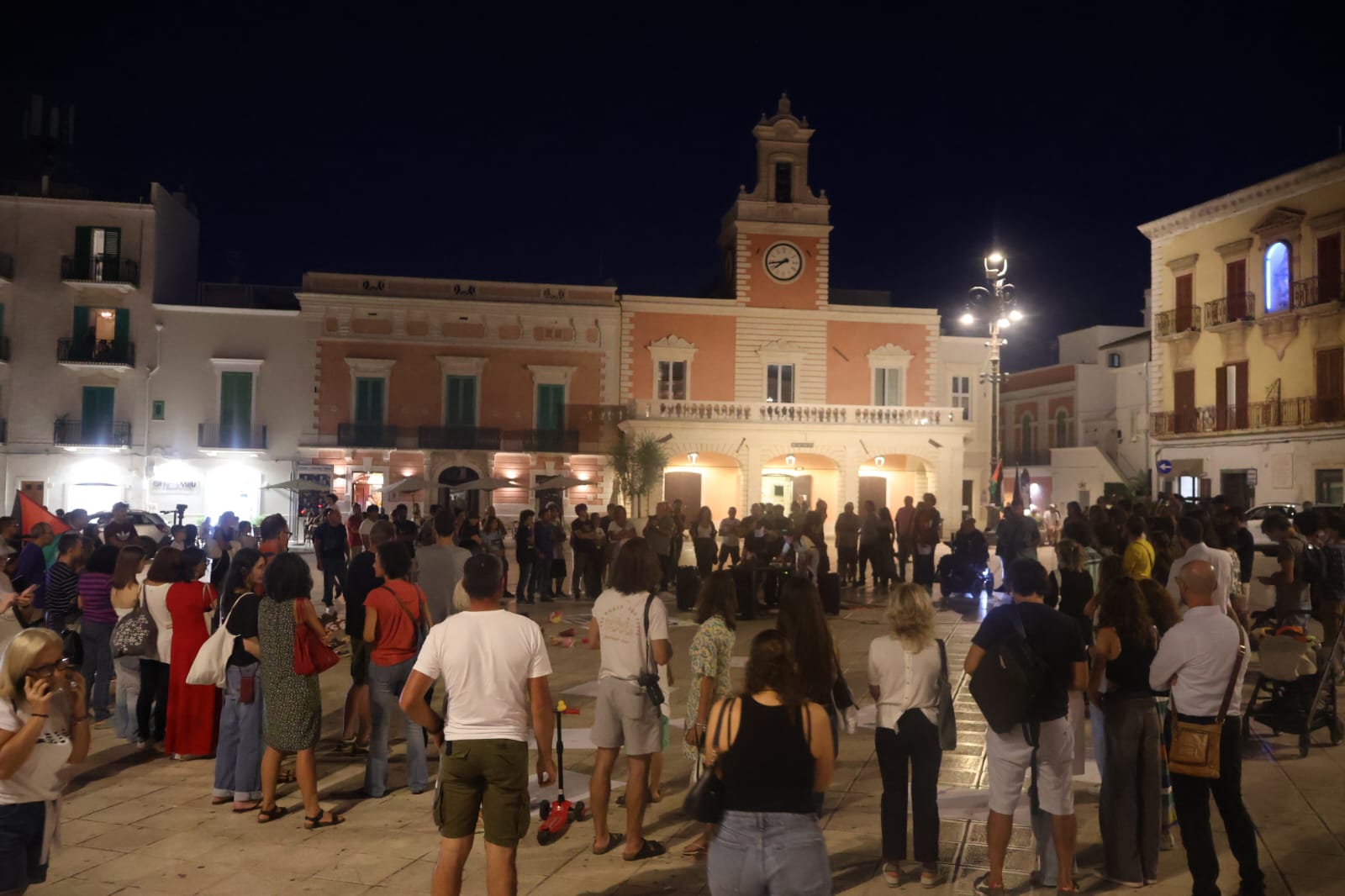 Fasano – La sirena antiaerea che suona… poi il silenzio assordante e di colpo tutti giù, a terra, a simboleggiare la devastazione che Gaza sta vivendo in questo periodo. Così si è concluso il Flash Mob che si è svolto ieri sera in piazza Ciaia dal titolo “Il Rumore di Gaza”, organizzato dal Comitato Cittadino Fasano per Gaza e il Popolo Palestinese e che ha visto un una buona partecipazione spontanea, con molti bambini.