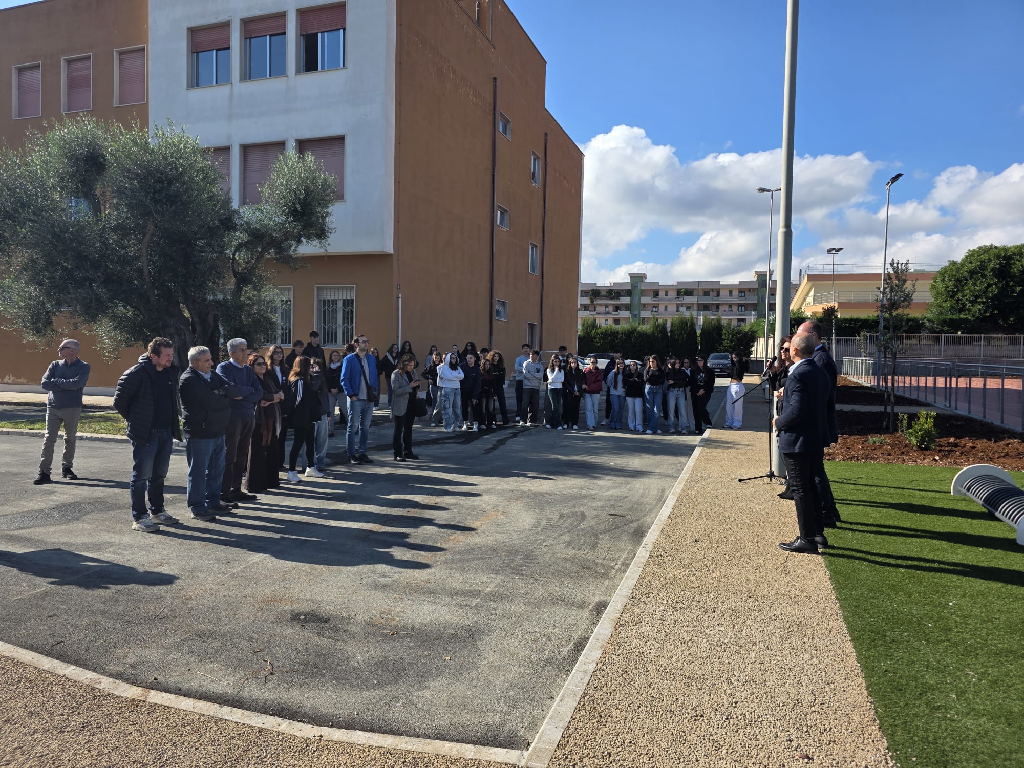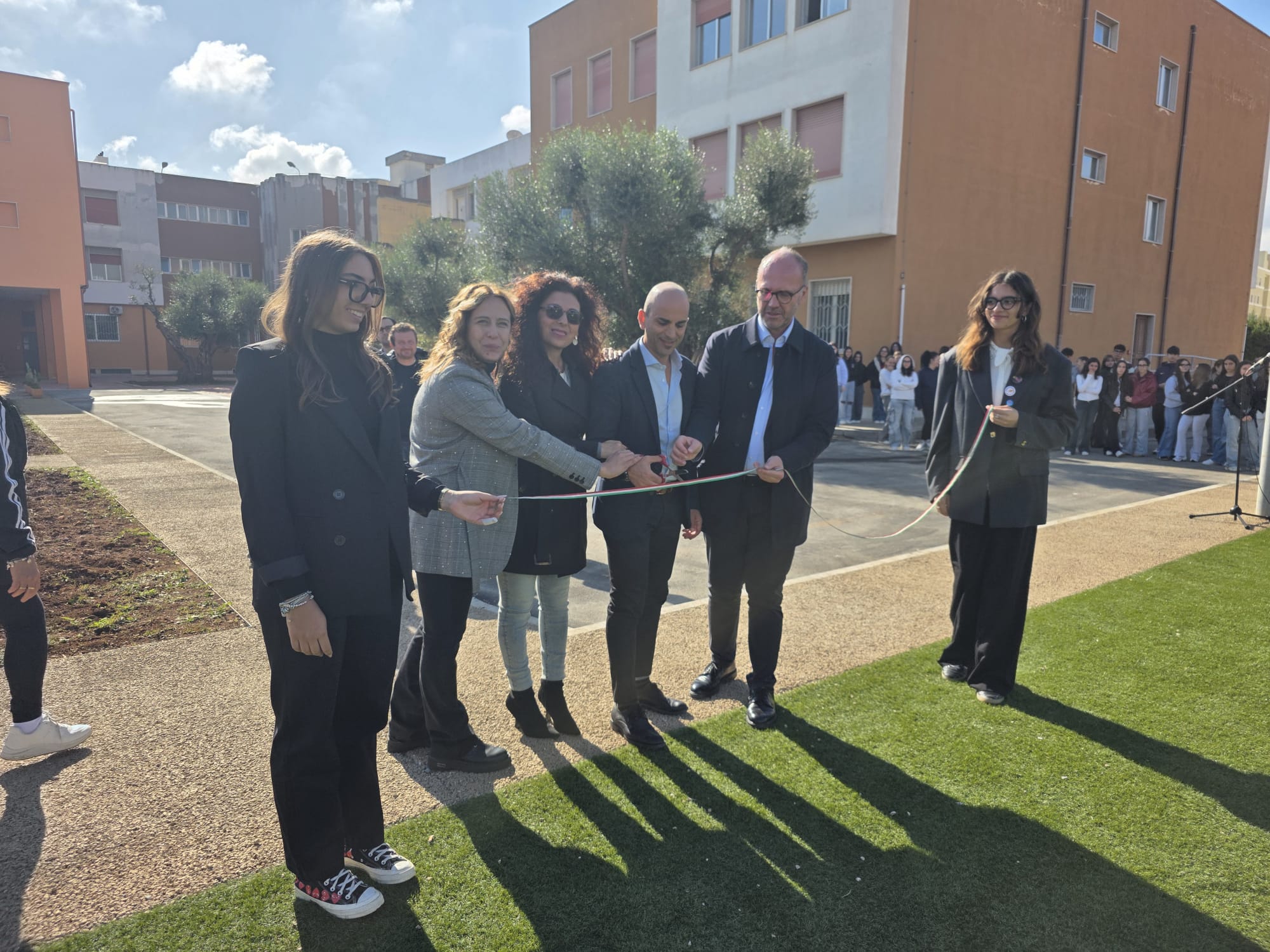 Alla presenza della dirigente scolastica Vita Ventrella, della ex dirigente Stella Carparelli, del sindaco Francesco Zaccaria, del consigliere provinciale Giuseppe Ventrella, l’ing. dell’ufficio tecnico della provincia di Brindisi Simona Bramato, e di altri esponenti dell’amministrazione comunale, si è svolto il taglio del nastro che ha di fatto riconsegnato agli studenti l’area retrostante il “liceo”, dopo importanti lavori di riqualificazione e messa in sicurezza.