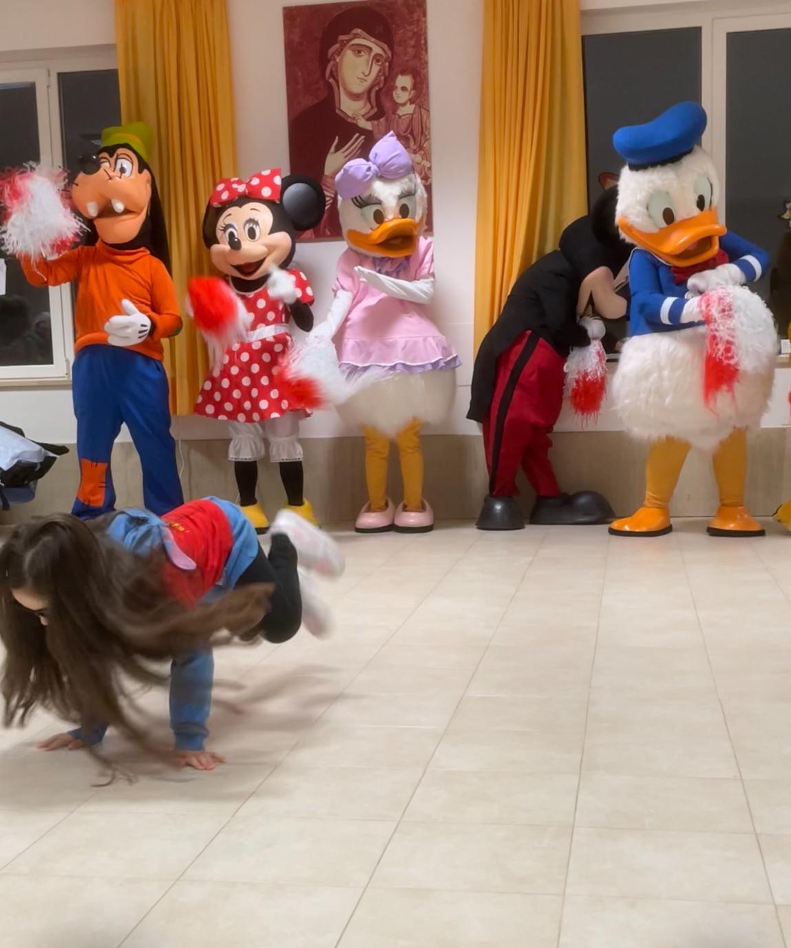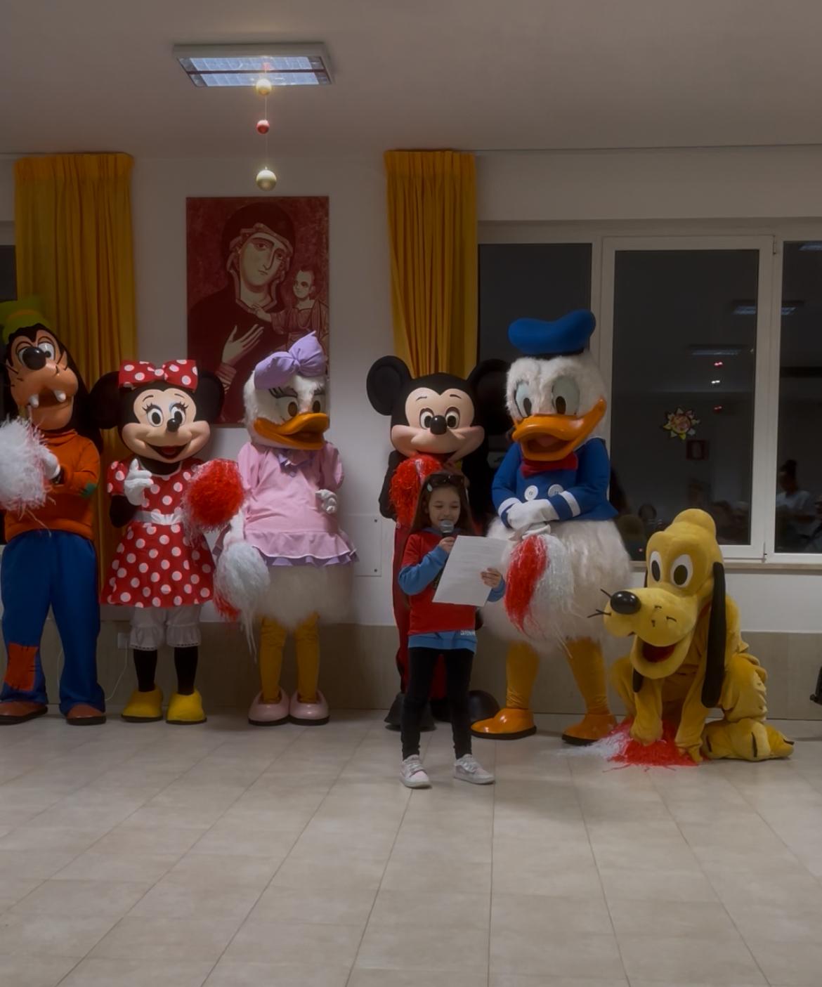 L’evento, svoltosi nel pomeriggio di ieri, si è aperto con la tenera partecipazione della piccola Diana Falconi, di appena sette anni, che ha commosso tutti recitando una poesia dedicata agli ospiti della casa di riposo. A seguire, le mascotte Disney, da Topolino e Minni fino ai personaggi più amati dai bambini di ogni età, hanno portato in scena uno spettacolo di musica, colori e danze che ha coinvolto tutti i presenti, regalando sorrisi e momenti di autentica gioia.