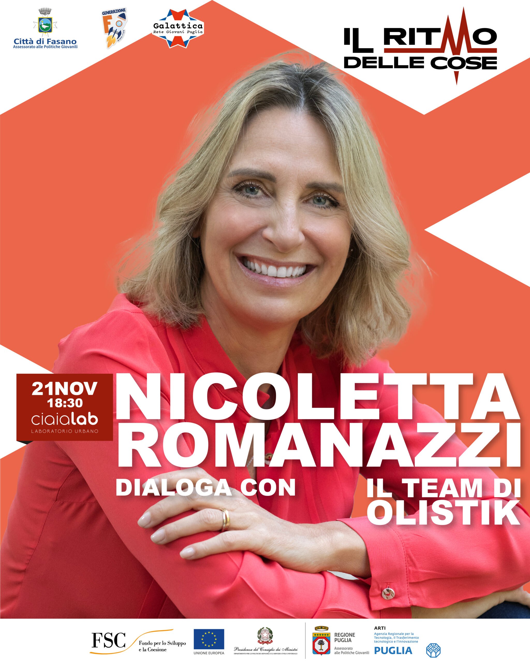Fasano – Il Comune di Fasano, Assessorato alle Politiche Giovanili, alza il sipario su “Il Ritmo delle Cose”, la rassegna pensata per dialogare con le nuove generazioni, offrendo visioni e strumenti per decifrare la complessità del presente e costruire il futuro. Cinque appuntamenti a ingresso libero che porteranno sul territorio voci autorevoli del panorama nazionale. L’apertura è affidata a una figura d’eccezione, un vero e proprio architetto della performance e del mindset vincente: Nicoletta Romanazzi.