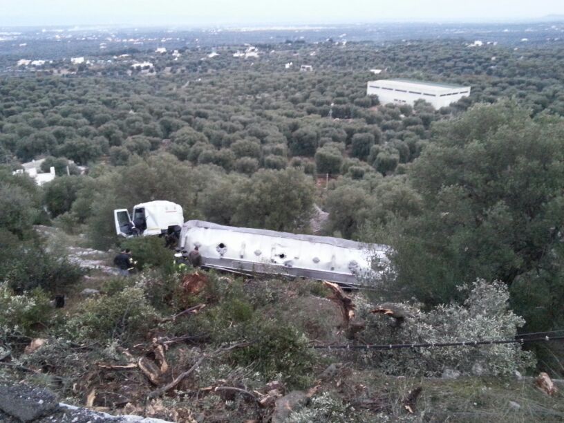 Autocisterna nel dirupo, salvo il conducente. LE FOTO - Osservatorio Fasano