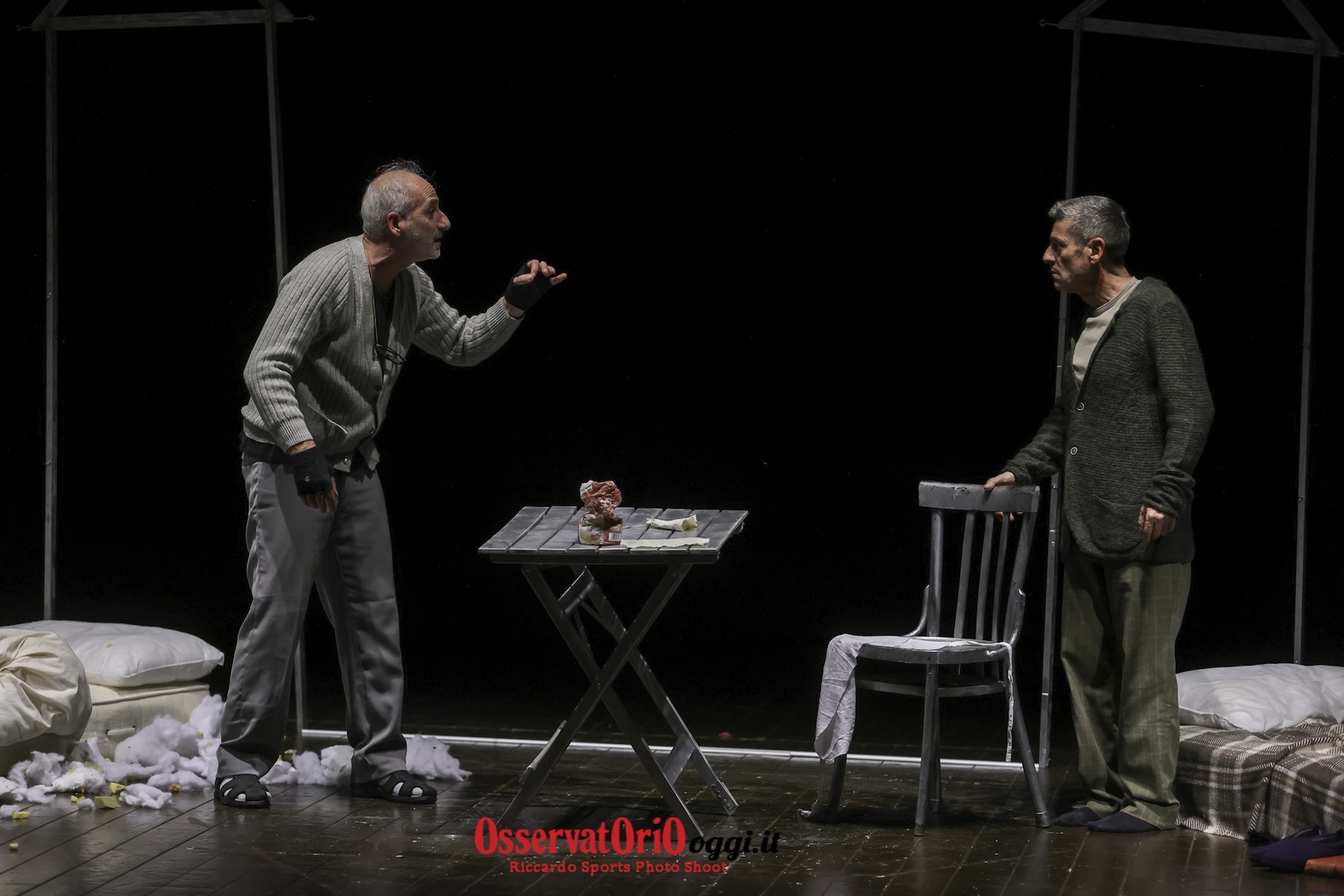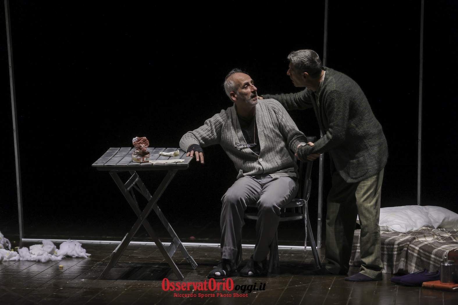 Il palco ha visto protagonisti i due personaggi, Cirillo e Pacebbene, rifugiati in un appartamento reso pericolante dal bradisismo. L’ambientazione, specchio di una precarietà crescente, ha fatto da sfondo a un’esistenza svuotata, dove l’unico sapore rimasto è quello amaro della memoria.