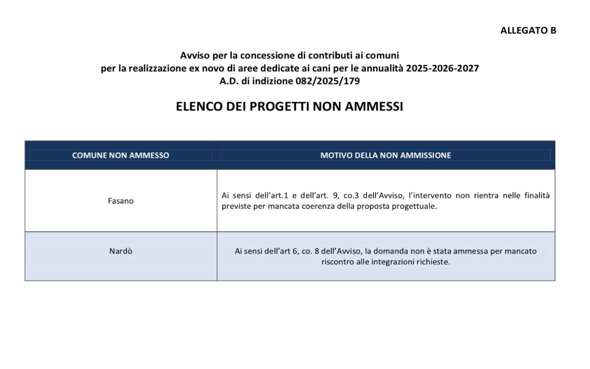 “Questa assenza – sottolineano i forzisti – rappresenta una lacuna evidente e inaccettabile, in termini di attenzione al benessere animale e di servizi alla cittadinanza. In moltissimi Comuni pugliesi e italiani le aree di sgambamento sono ormai una realtà consolidata, segno di civiltà e buona amministrazione, mentre a Fasano si continua a rinviare. Chiediamo all’Amministrazione di chiarire quali siano state le cause che hanno portato all’inammissibilità della domanda e, soprattutto, di spiegare quali azioni concrete intenda adottare per colmare finalmente questa mancanza”.