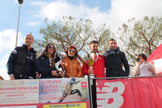 Il "Trofeo 2 Mari" è stato vinto dalla Podistica Grottaglie che si è presentata a Fasano in gran numero contraddistinguendosi anche per la colorata, con tanti di palloncini, e sportivissima partecipazione. Al termine della gara sono state consegnate anche, dal presidente provinciale Michele Cuoco, anche le maglie di campione provinciale vinte da Cosimo Stranieri (Apuliathletica) per la categoria Promesse, Andrea Petarra (Apuliathletica) per la cat. SM, Cosimo Pomarico (Oriabikerun) per la cat. SM35, Sante Donnaloia (Podistica Carovigno) per la cat. SM40, Vincenzo Daggiano (Apuliathletica) per la cat. SM40, Pasquale Funiati (Apuliathletica) per la cat. SM50, Raffaele Delli Fiori (Atletica Latiano) per la cat. SM55, Neil Harry Holdsworth (Runners San Michele Salentino) per la cat. SM60, Paolo Laghezza (Atletica Pezze di Greco) per la cat. SM65, Giuseppe Galizia (Podistica Carovigno) per la cat. SM 70, Domenico De Carlo (Atletica Pezze di Greco) per la cat. SM80.