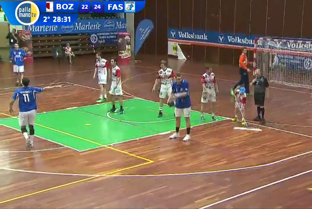 Nella ripresa Fasano supera indenne un’inferiorità numerica e punge in attacco con Maione a cui fa eco dall’altra parte del campo Radovcic: dopo 10′ è 14-14 e qui la compagine fasanese prende il largo. Le file difensive pugliesi si serrano, Fovio argina due conclusioni ed i bianco azzurri ospiti si portano sul 14-17, fallendo tre attacchi del +4 come nel primo tempo. Bolzano ne approfitta e resta in scia, senza però raggiungere il pareggio. Con altri due interventi di Fovio Fasano tocca il +4 sul 20-24 a 5′ dal termine. Turkovic e Starcevic suonano la carica e Bolzano tenta la rimonta negli ultimi istanti: l’attacco fasanese si blocca di fronte ad un Volarevic preciso nel finale ed autore anche della parata che a 15″ dalla fine garantisce l’attacco del possibile pareggio ai padroni di casa. Starcevic attacca in velocità ma fallisce l’appuntamento con la rete e Fasano sorride sul 23-24 a tempo scaduto.
