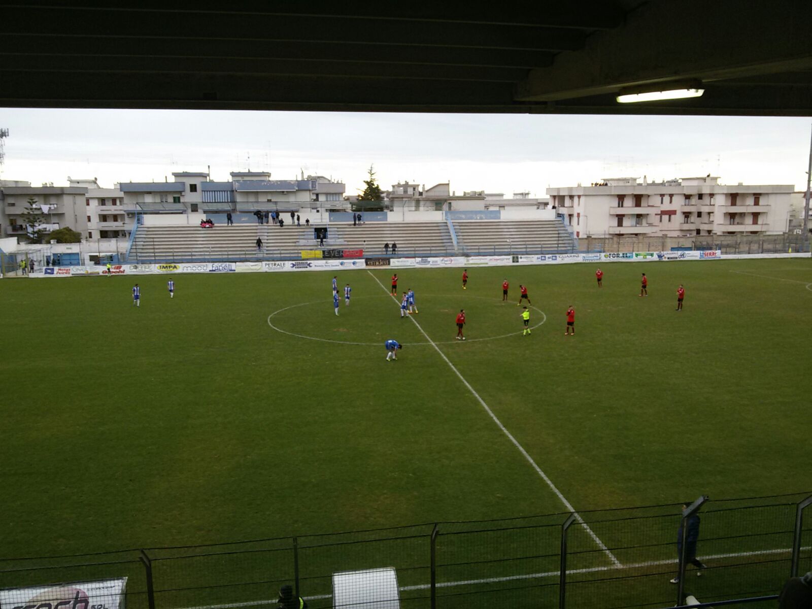 Dagli spogliatoi, dopo l’intervallo, torna in campo un Fasano trasformato capace di neutralizzare ogni tentativo di manovra dei salentini, che non ripresentano nella seconda frazione il bel carattere visto nei primi 45 minuti. Fasano che si rende pericoloso al minuto 55 con Amodio, ben servito da Gennari; il numero 10 biancazzurro solo davanti a Melissano conclude centrale e potente. L’appuntamento con il goal per il Fasano arriva al 64’ con Gennari che con un bel tocco di tacco controlla il pallone e infila sotto le gambe di Melissano, con il pallone si infila in porta per il 2-0. Fasano ghiaccia la partita con la doppietta di Longo al minuto 71’, ben servito dalla sinistra da Amodio, che poco prima aveva preoccupato tutti dopo aver subito un contrasto di gioco. Mister Calasso prova timidamente a recuperare inserendo un quarto attaccante (Conte) per un terzino. La risposta arriva al minuto 74 con una bella conclusione di Morelli dalla distanza, su cui Zambetti deve distendersi per deviarla. Sul tiro, subisce fallo, l’attaccante salentino. La punizione si trasforma in una conclusione che supera di poco la traversa su tentativo di Carlà. Fasano ancora avanti con il neo entrato Laguardia, ‘egoista’ al minuto 80’, quando da posizione defilata tenta il tiro, invece di servire compagni a centro area. La partita non regala più grosse emozioni fino al termine. Ottava vittoria casalinga per il Fasano e primo posto confermato.
