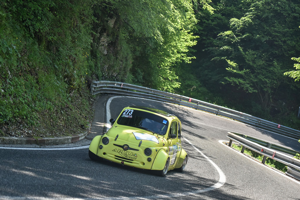 Vittoria in solitaria tra le piccole Bicilindriche per il poliedrico Mimmo Tinella, che al volante della sua Fiat 500 di Gr.5/700 ha migliorato il suo primato personale.