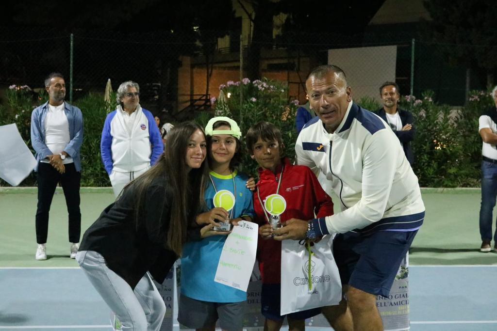Fasano – Si è conclusa domenica 21 agosto alla Selva di Fasano la quarantanovesima edizione dello storico Torneo Giallo dell'Amicizia. Un'edizione record per numero di partecipanti e per presenza di pubblico. Sono stati 73 i piccoli tennisti iscritti al torneo Baby Giallo, magistralmente diretto dal maestro Romano Iacovazzi e dalla maestra Antonella Convertino, e ben 240 gli iscritti al torneo degli adulti.