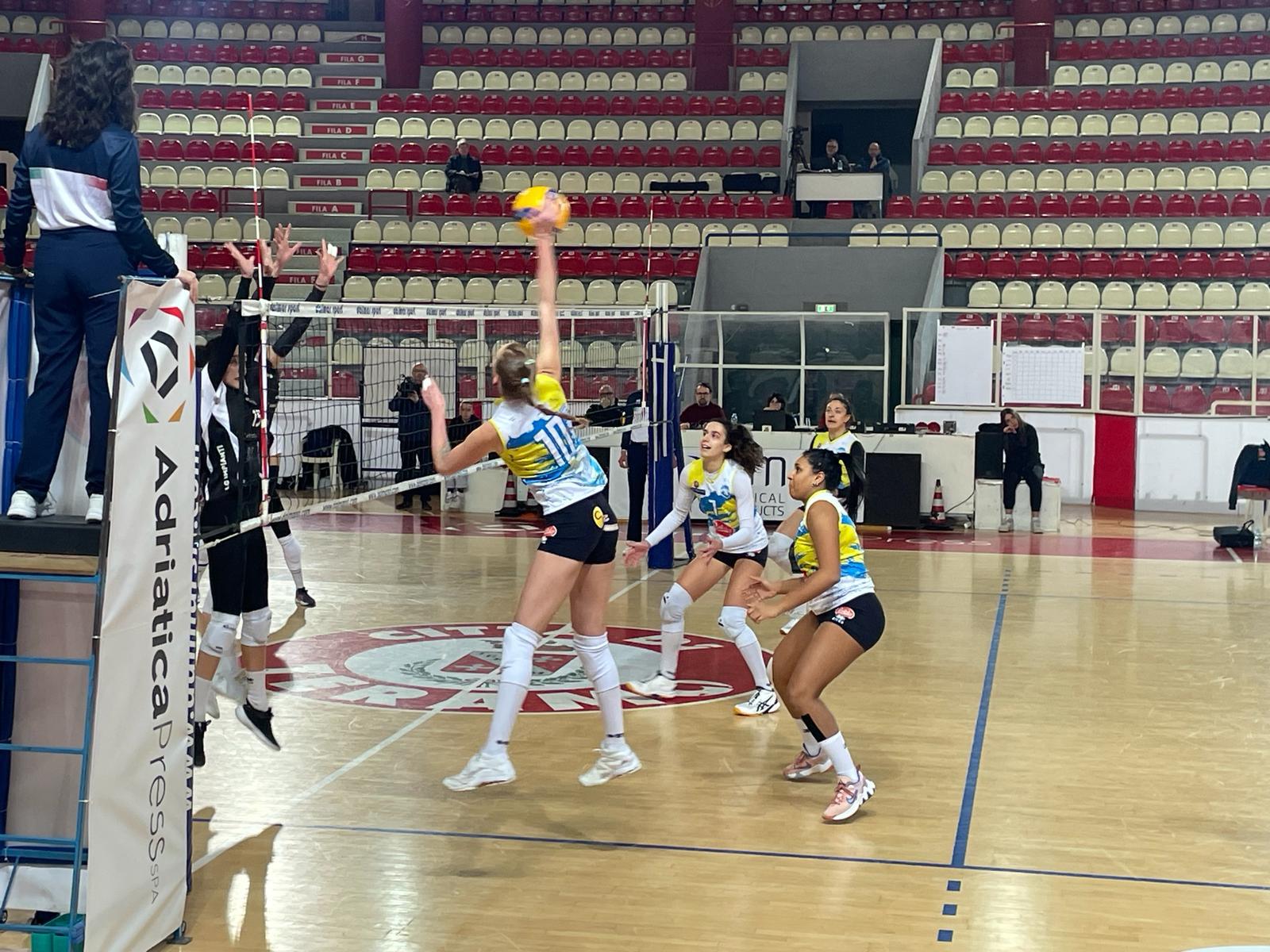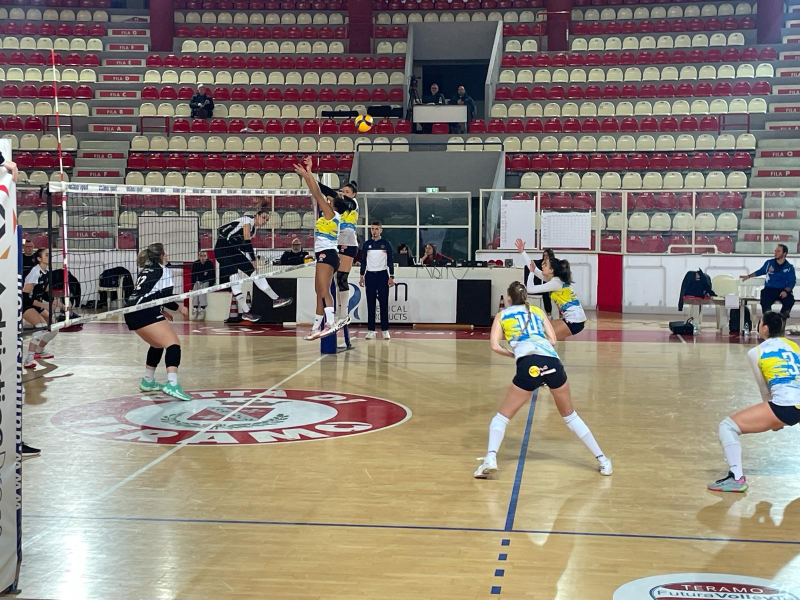 Fasano – Gara perfetta per le gialloblu di coach Paolo Totero che in quel di Teramo fanno bottino pieno allungando in classifica proprio sul roster abruzzese. Un match che ha mostrato un particolare equilibrio solo nella fase iniziale della gara quando le padrone di casa con molta grinta e determinazione costringevano le fasanesi agli straordinari. Un set combattuto che Valentina Barbolini e compagne riuscivano comunque a vincere (25-27) indirizzando la gara sui binari del successo finale. Una vittoria concretizzata nei due restanti set che le fasanesi conducevano in porto senza commettere ulteriori distrazioni. Nel secondo set infatti le ragazze di coach Paolo Totero piazzavano subito un break decisivo che permetteva loro di chiudere il gioco senza patemi. Nel terzo game infine ci si attendeva la risposta delle padrone di casa ed invece a fare la gara erano le gialloblu fasanesi, che dominavano letteralmente il set costringendo il Teramo a mollare definitivamente la presa al cospetto di una Pantaleo precisa e cinica che in questa prima di ritorno ha saputo palesare una rinnovata autostima nei propri mezzi e quindi grande personalità nella conduzione del match, anche nei momenti più difficili.