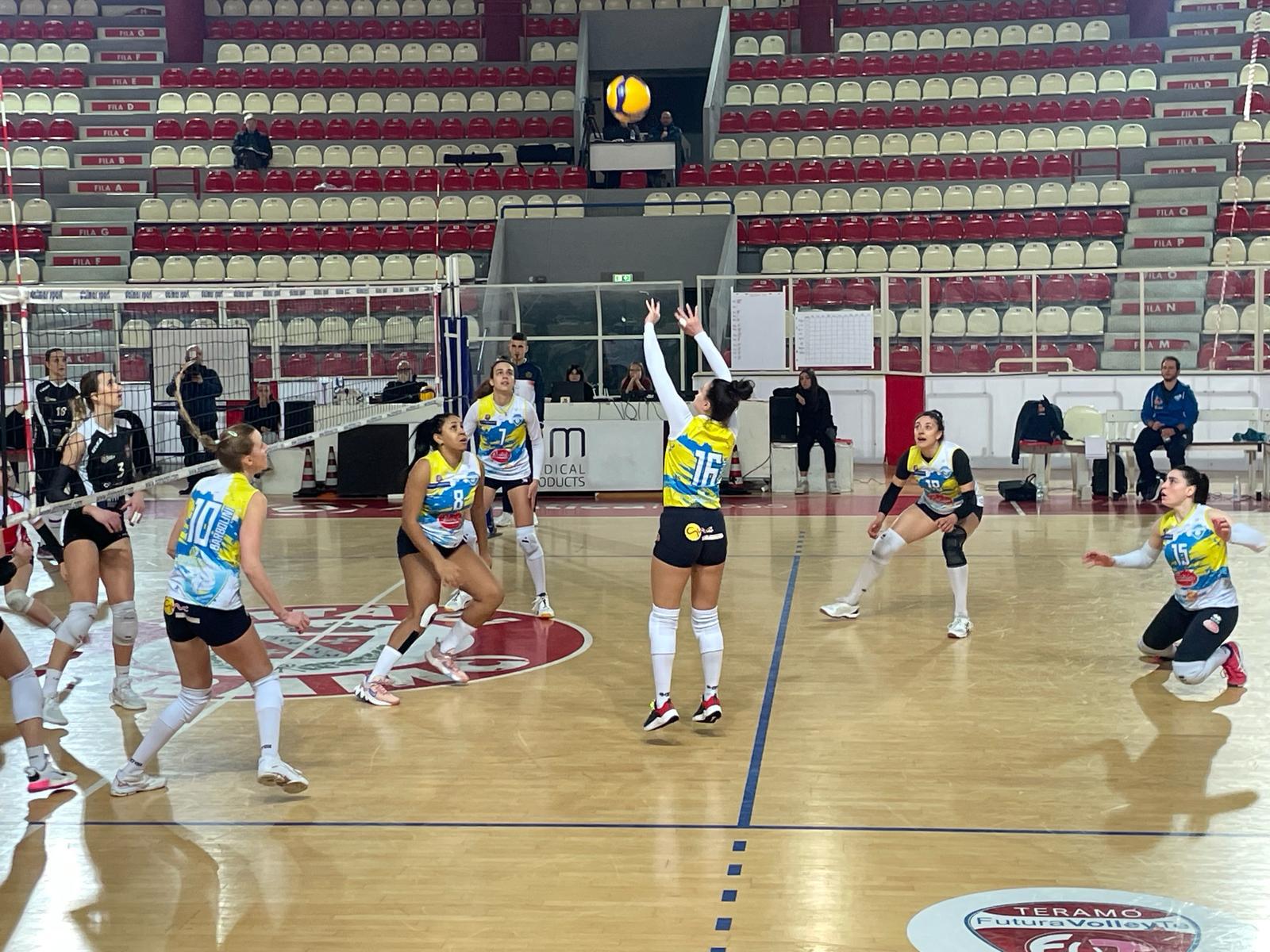 Adriatica Press Futura Teramo: Vendramini, Ragnoli 5, Poli 6, Di Diego 1, La Brecciosa, Costantini 12, Patriarca, D’Egidio, Mazzagatti 3, Fanelli 2, Capulli, Ventura, Lestini 13. All. Nanni.