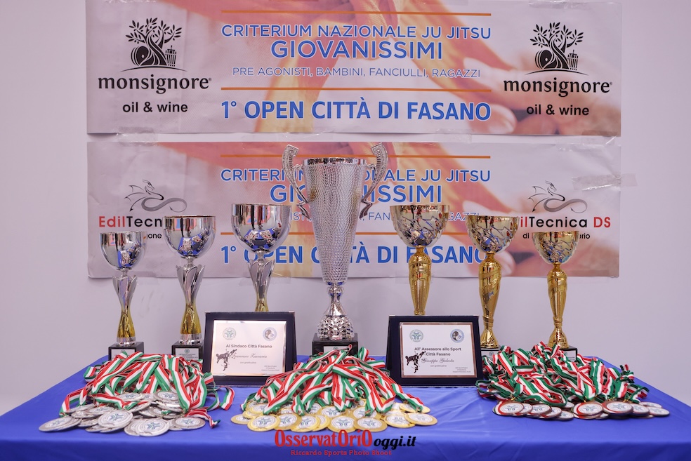Fasano – Oltre 350 atleti di 17 diverse società sportive, provenienti da tutto il sud Italia, si sono incontrati lo scorso weekend (27-28 aprile) nel palazzetto di Vigna Marina a Fasano per sfidarsi nel 1° Trofeo Open Città di Fasano e Criterium Nazionale Giovanissimi Sud Open, evento di arti marziali di rilevanza nazionale, organizzato dalla palestra fasanese New Sport Project dei maestri Francesco Scolti e Leonardo Ferrara, sotto l'egida della FiJLKAM – Federazione Italiana Judo Lotta Karate Arti Marziali e patrocinato dal Comune di Fasano.