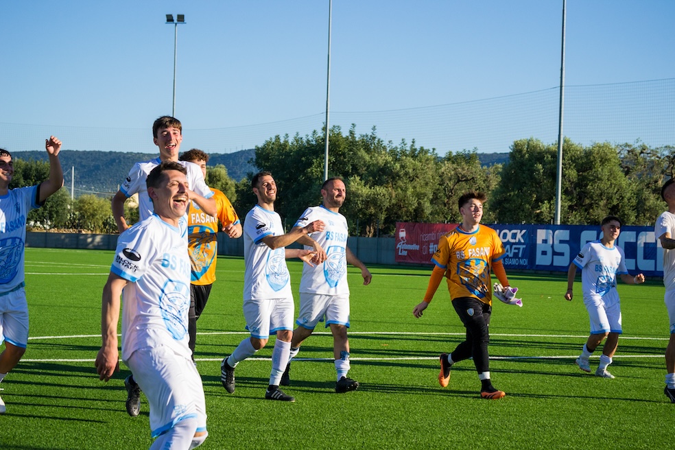 La BS Fasano ha poi dilagato, Mattias Colucci si porta a casa il pallone siglando un poker, passerella di gloria anche per capitan Valentini (su rigore), Lapadula e il giovane 2008 Pierluigi Delle Monache.