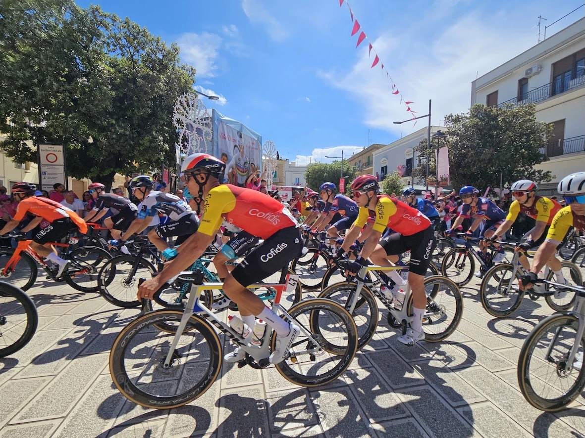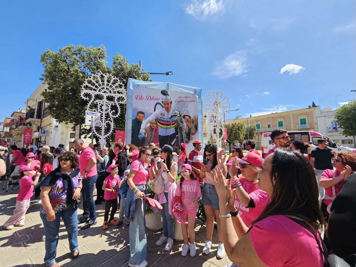 L'impegno dell'Asd Narducci del presidente Antonio Zizzi ha trasformato il passaggio del Giro in un'occasione unica per celebrare Vito Di Tano, figura indimenticabile del ciclismo italiano, e contestualmente vivere da vicino l'emozione della grande corsa a tappe. La dedica al compianto campione ha trovato un'eco potente anche nella diretta televisiva della Rai, che ha più volte ricordato la grandezza di Di Tano, elevandolo a simbolo intramontabile di questo sport. Il pomeriggio di martedì 13 maggio si è acceso con l'arrivo festante della Carovana Rosa, un vero e proprio spettacolo itinerante che ha animato via Roma, confluendo poi sulla SS16 e toccando le località di Pezze di Greco, Speziale e Montalbano. Proprio all'ombra della gigantografia dedicata a Di Tano, il direttore di gara Stefano Allocchi ha voluto rendere omaggio al campione, trasformando la frazione fasanese in una vibrante tribuna a cielo aperto in attesa del passaggio dei corridori.