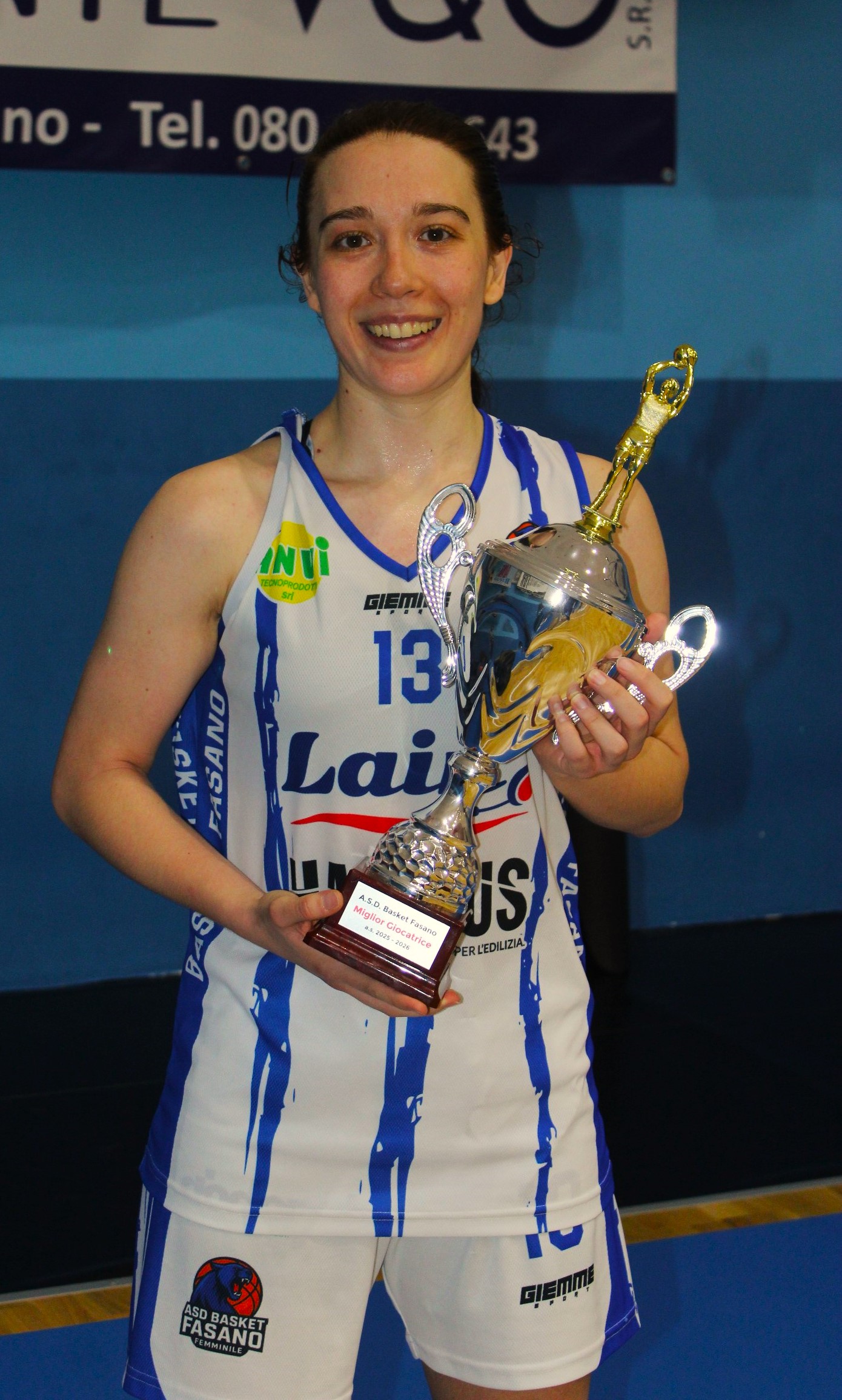 Fasano – Durante l’intervallo di Basket Fasano – Angri Pallacanestro, gara 1 del primo turno dei playoff della Serie B femminile, la stampa sportiva fasanese e i tifosi hanno premiato per il secondo anno consecutivo la play-guardia Roberta Ferraretti come miglior giocatrice della stagione 2025/2026. Ferraretti entra così nella piccola élite di atleti che hanno vinto il trofeo per due volte, composta anche da Emiliano Paparella e Ciccio Colucci, quest’ultimo anche lui riuscito a vincerlo per due anni di seguito.