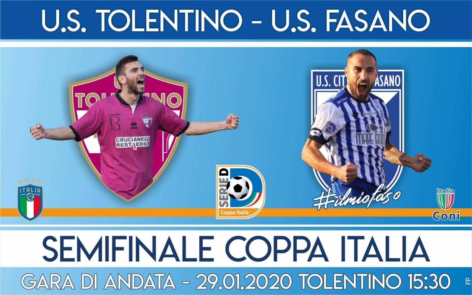 FASANO- Us Città di Fasano e Tolentino in campo questo pomeriggio (29 gennaio) per il primo atto della semifinale di Coppa Italia serie D. Sfida inedita tra le due formazioni che raggiungono per la prima volta nella loro storia un traguardo così prestigioso. La passata stagione i fasanesi si fermarono ai trentaduesimi di finale. Marchigiani, invece, la scorsa annata protagonisti in Eccellenza, ma nella loro storia centenaria vantano un quarto di finale del trofeo di serie D nella stagione 2007/08, dove furono eliminati per mano del Como.