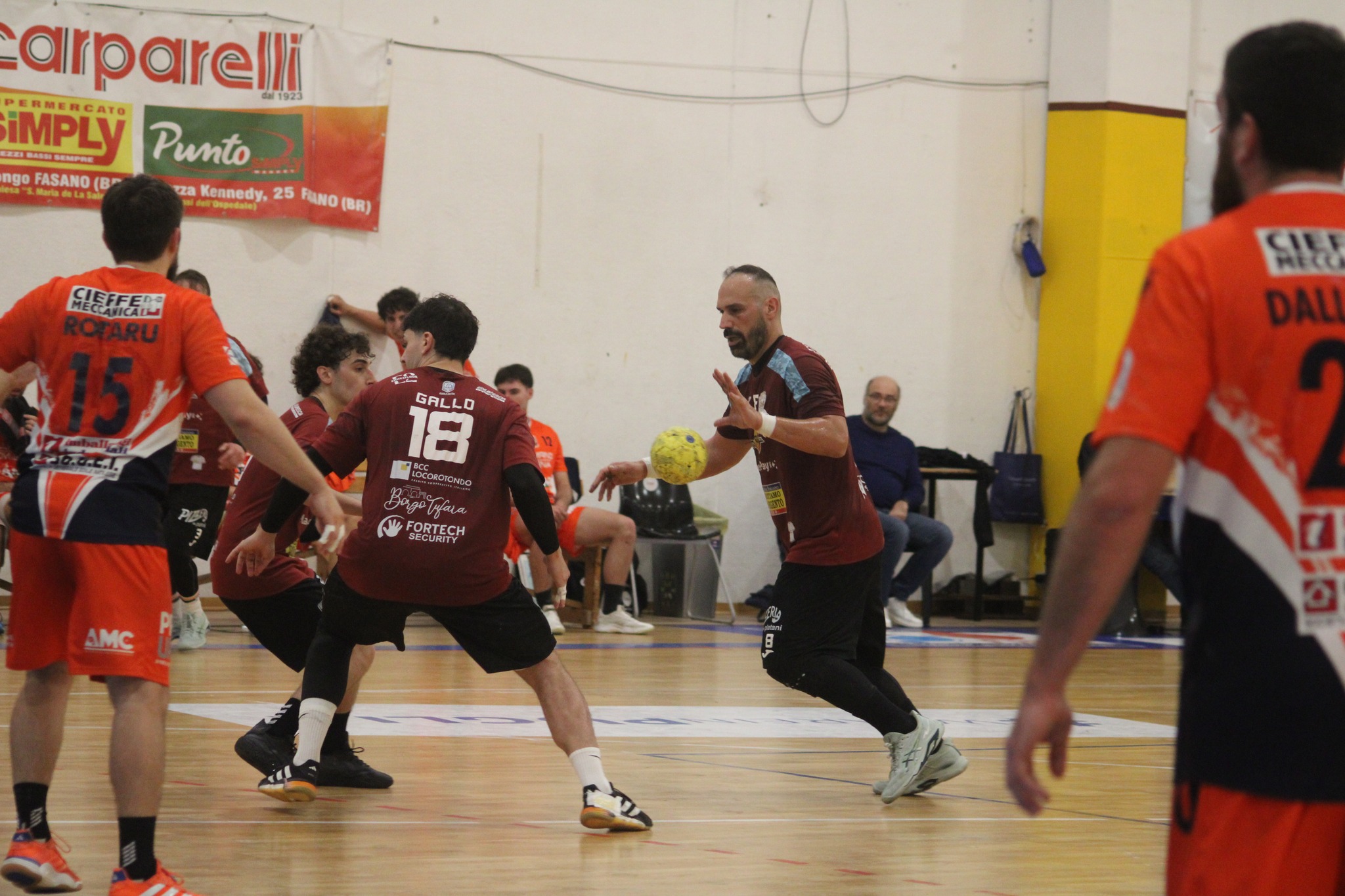Fasano – Netta sconfitta che per la Innotech Serra Fasano, che non riesce a far valere il fattore campo contro la Pallamano Romagna, che grazie ad un’ottima prestazione conferma il secondo posto in classifica a ridosso della capolista Camerano. Sul parquet della palestra Zizzi, i romagnoli s’impongono con un netto 28-16, trascinati in attacco dalle conclusioni dalla distanza di Nemeth e dall’ottima prestazione tra i pali di Maistrello, ipotecando già il match a fine primo tempo, grazie al +5 (10-15) con cui le squadre andavano al riposo.