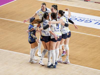 Dopo un primo set dominato dalla fisicità di Roma, le Pantagirl’s hanno iniziato a macinare gioco. La difesa, marchio di fabbrica del team fasanese, ha contenuto le bordate di Perovic e Bosso, permettendo alla regia di Muzi di innescare con continuità le proprie bocche di fuoco. Sotto 2-1 nel computo dei set, le gialloblù non hanno mollato, trascinando la sfida a un tie-break vietato ai deboli di cuore.