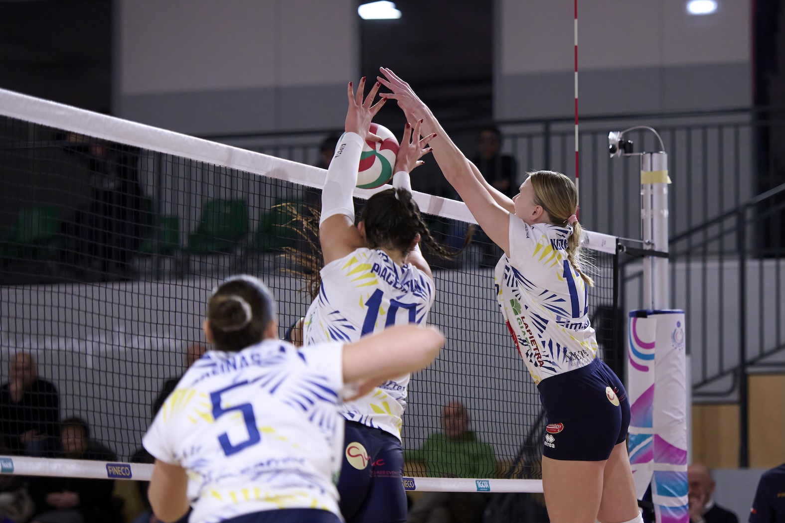 «Era una sfida importante ai fini della classifica – spiega coach Totero a fine partita – e per noi sono tre punti importantissimi. Oggi ci portavamo dietro qualche acciacco dalla partita di domenica in cui c’è stato uno scontro fra Muzi e Salinas, ma sono state brave a gestire bene e rimanere sul pezzo controllando le situazioni. Sicuramente Modena è una squadra molto giovane e l’errore è normale che ci sia, fa parte del percorso di crescita. Per quanto ci riguarda non abbiamo giocato la pallavolo che possiamo, sono caduti palloni che non devono cadere, ma come detto eravamo in una condizione fisica poco ottimale e di conseguenza è normale ci siano state queste situazioni».