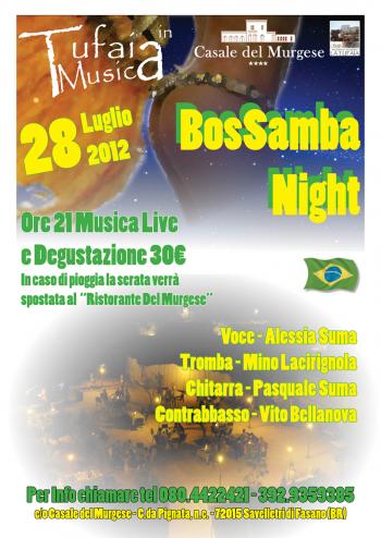 Presso il ristorante in giardino "La Tufaia", infatti, Alessia Suma (voce), Mino Lacirignola (tromba), Pasquale Suma (chitarra) e Vito Bellanova (contrabbasso), coinvolgeranno i presenti in una calda atmosfera dai ritmi caraibici.