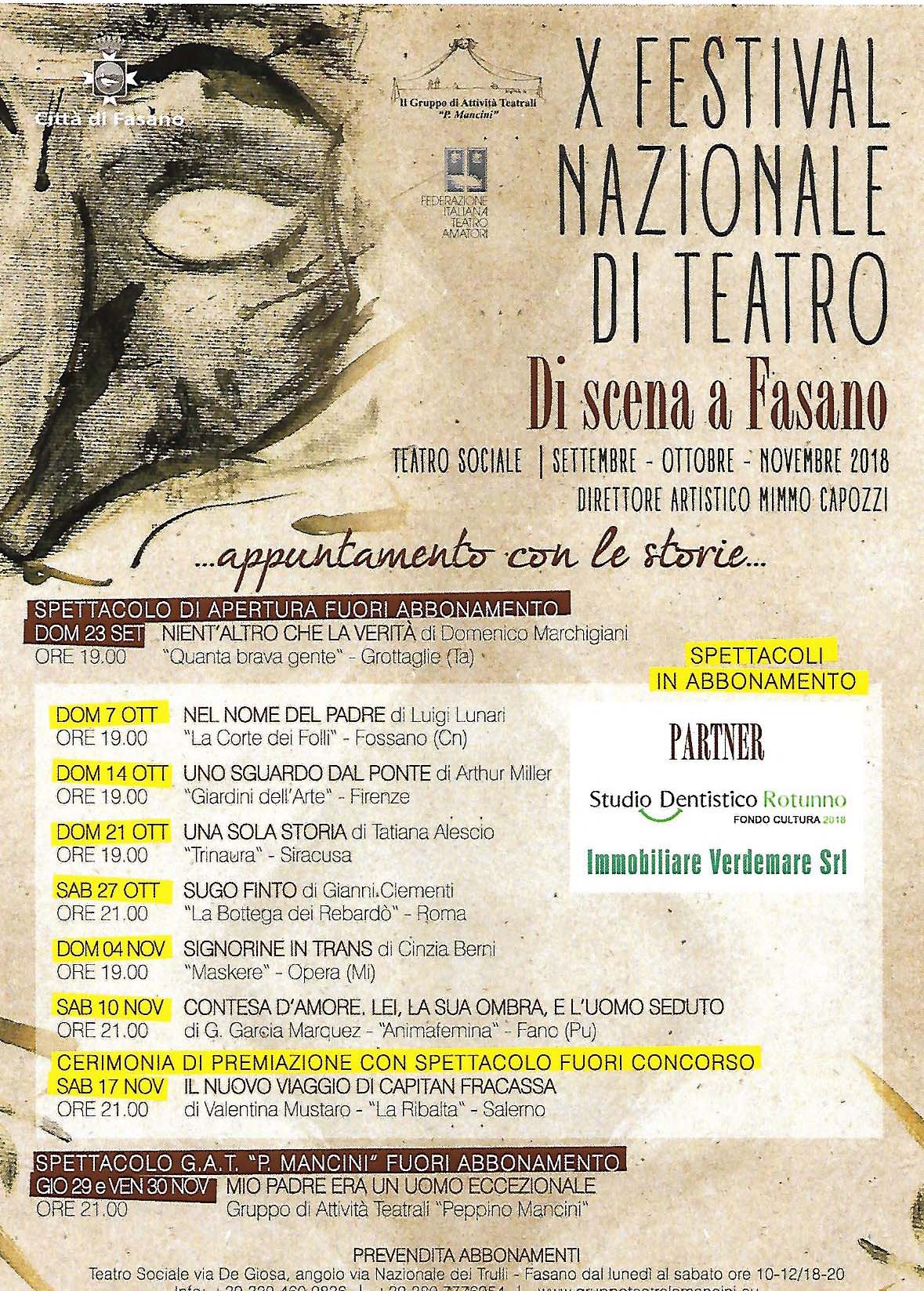 Domenica 7 ottobre, a partire dalle ore 19 al Teatro Sociale, in via Nazionale dei trulli a Fasano si alza il sipario per la prima compagnia teatrale in gara: “Nel nome del Padre” della Corte dei Folli.