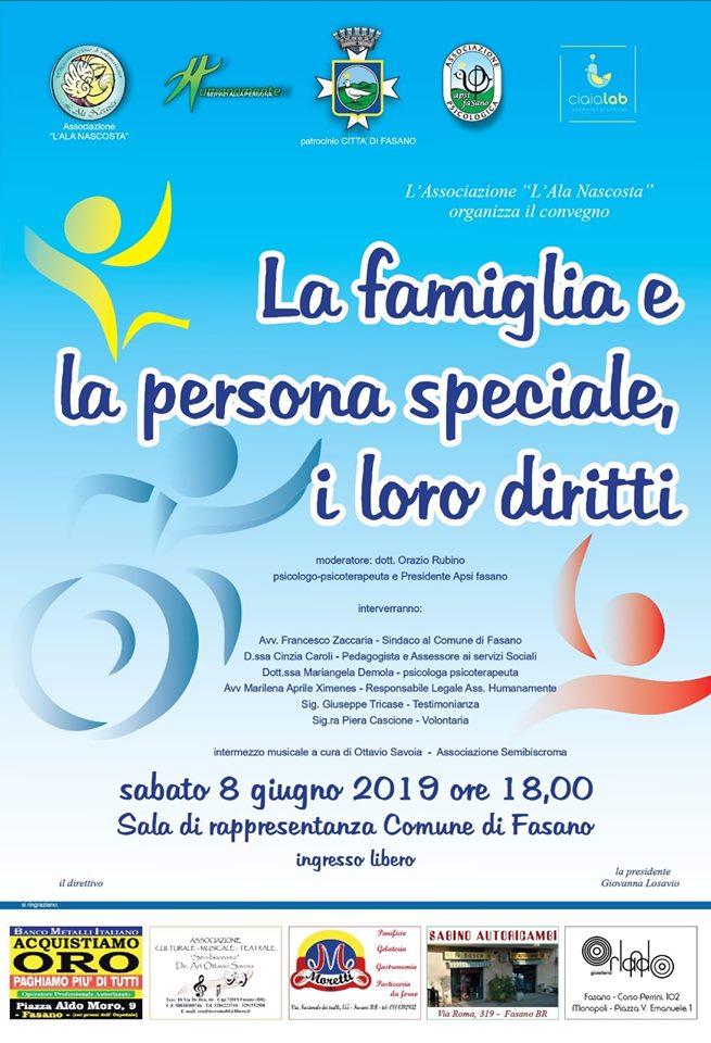 L'incontro è organizzato dall'Associazione "L'ala nascosta" in collaborazione con APSI Fasano.